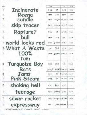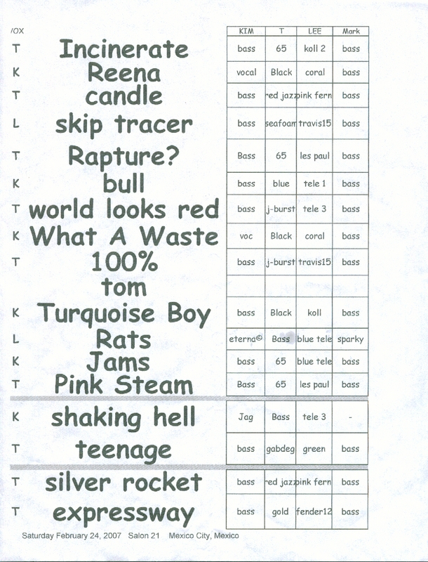 | SET LIST | NOTES |