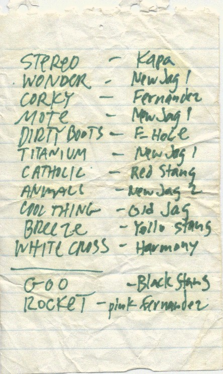 First known performance of "Cinderella's Big Score" "Mote" "Dirty Boots" "Titanium Expose" "Mary Christ" and "Kool Thing".
