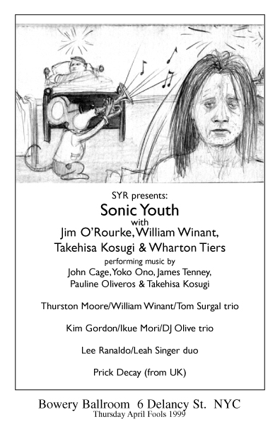 SY were joined by special guests Takehisa Kosugi, Jim O'Rourke, William Winant, and Wharton Tiers.