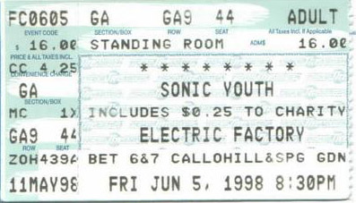 Date: Friday, June 5th, 1998 City: Philadelphia, Pennsylvania, USA Venue: The Electric Factory