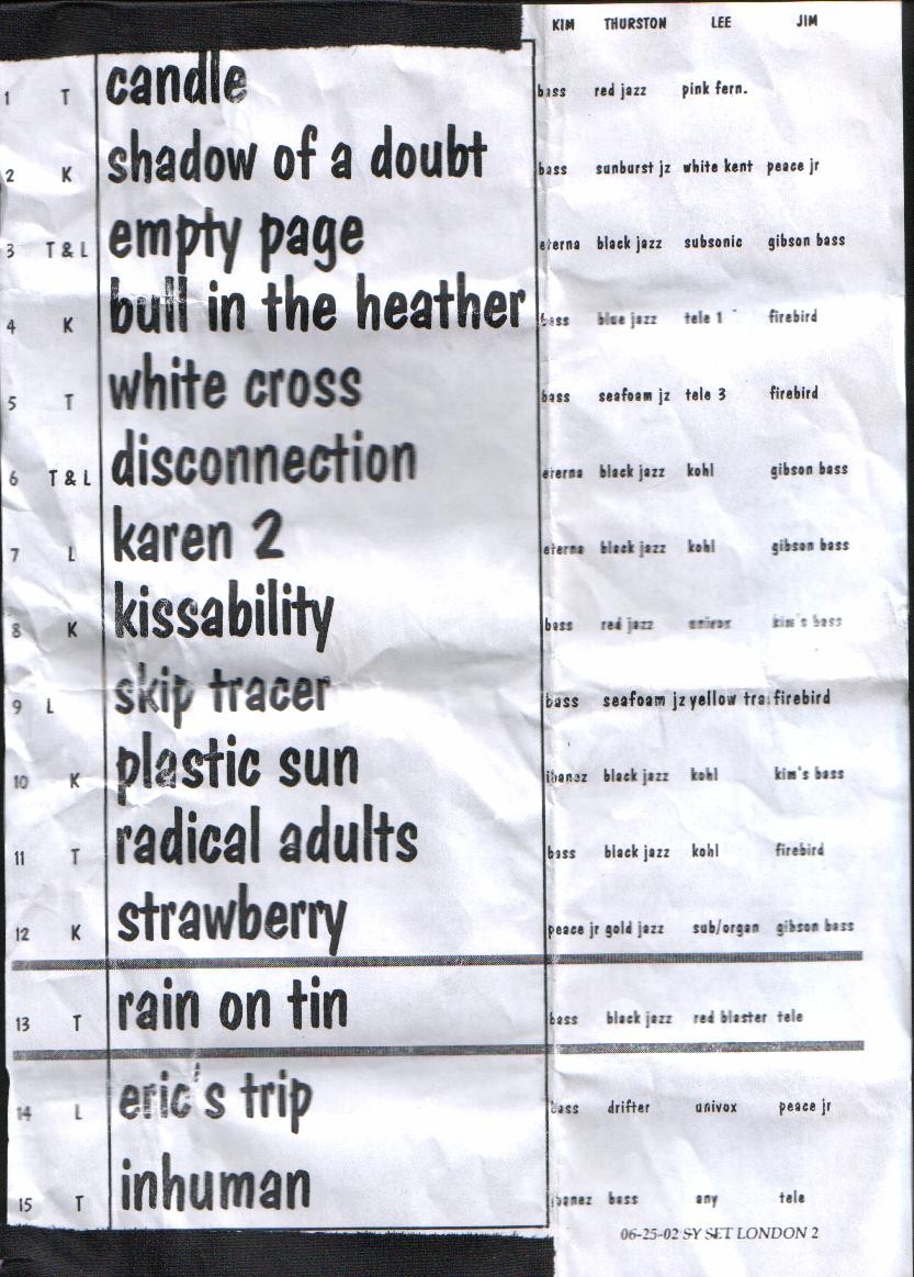 Date: Tuesday, June 25th, 2002 City: London, England Venue: Shepherds Bush Empire
