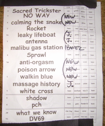 | SET LIST | NOTES |