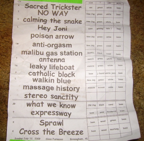 | SET LIST | NOTES |