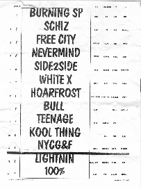 Burning Spear Schizophrenia Free City Rhymes Nevermind Side2Side White Kross Hoarfrost Bull in the Heather Teenage Riot Kool Thing NYC Ghosts & Flowers -- Brother James |