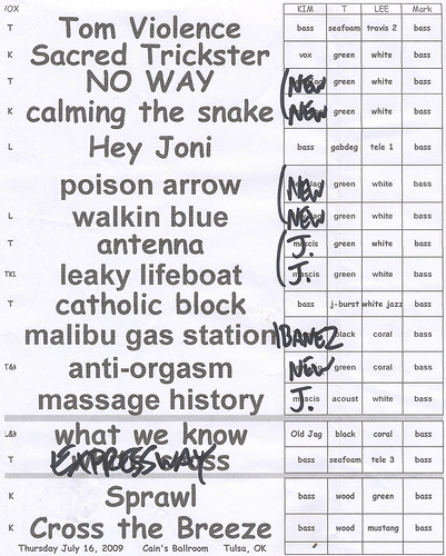 Tom Violence Sacred Trickster No Way Calming the Snake Hey Joni Poison Arrow Walkin Blue Antenna Leaky Lifeboat Catholic Block Malibu Gas Station Anti-Orgasm Massage the History -- What We Know Expressway to Yr Skull -- 'Cross the Breeze |