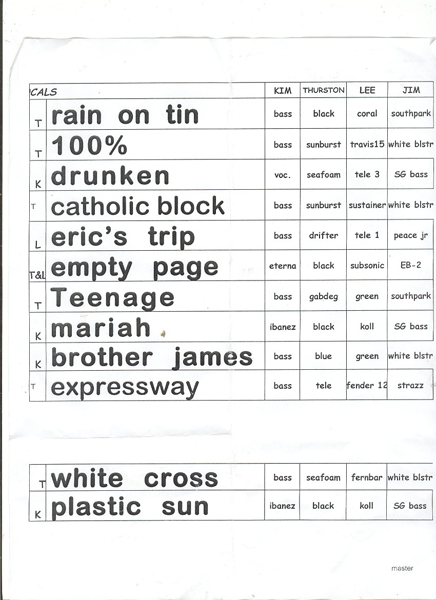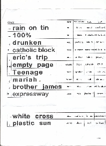 Rain On Tin 100% Drunken Butterfly Catholic Block Eric's Trip The Empty Page Teenage Riot Mariah Carey & the Arthur Doyle Hand Cream Brother James Expressway To Yr Skull |