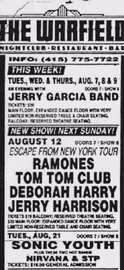 Date: Tuesday, August 21st, 1990 City: San Francisco, California, USA Venue: Tower Records (afternoon) / Warfield Theatre (night)