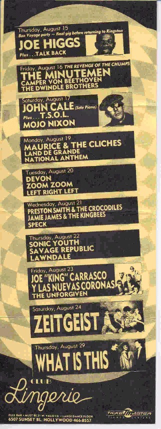 Date: Thursday, August 22nd, 1985 City: Los Angeles, California, USA Venue: Club Lingerie