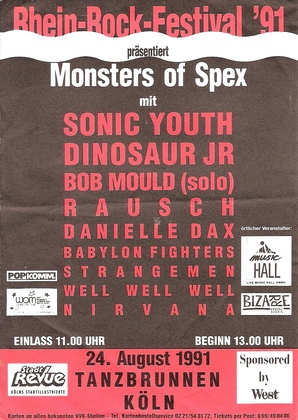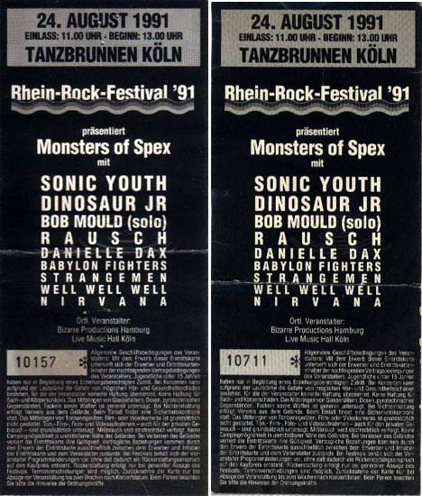 The audio for "Brother James", "Dirty Boots", "I Love Her All The Time", and "Kool Thing" from "1991: The Year Punk Broke" comes from this show. Also, "Orange Rolls" appears on "(This Is Known As) The Blues Scale".