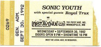 Date: Wednesday, September 30th, 1992 City: Minneapolis, Minnesota, USA Venue: First Avenue -- 2 SHOWS