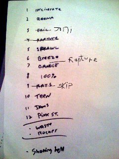 Incinerate Reena Hey Joni The Sprawl Cross the Breeze Do You Believe in Rapture? Candle 100% Skip Tracer Teenage Riot Jams Run Free Pink Steam -- What a Waste Silver Rocket -- Shaking Hell |