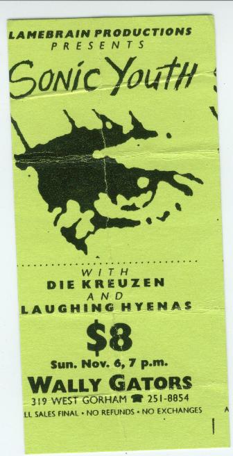 Date: Sunday, November 6th, 1988 City: Madison, Wisconsin, USA Venue: Wally Gator's