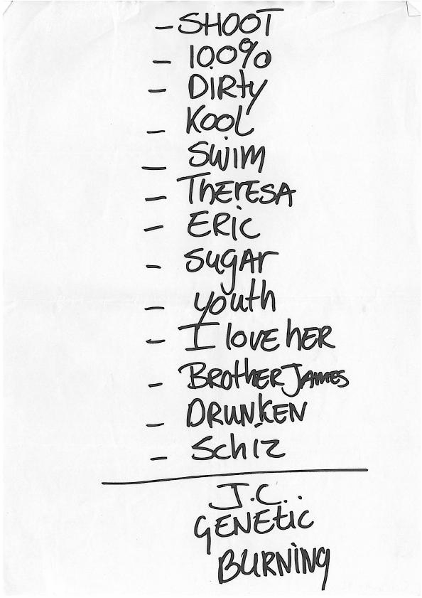 | SET LIST | NOTES |