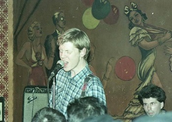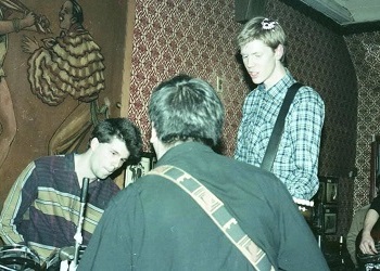 T: "We are totally unprepared. Hey everything's broken up here! Nothing works! This doesn't work? You're gonna use that..use that little amp? Alright, he's gonna use this little dinky amp instead of what we had intended to use. Count your blessings! We have to tune now. Anyway..this mic is fucked up too now. Anyway, this song is called "Inhuman"."