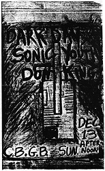 This show brought the band its first print review, a piece by Mark Coleman for the New York Rocker. Although Confusion Is Next cites Mark Coleman's review of the band's CBGB gig as being a Friday night a couple weeks after the Music For Millions gig, Mark's own recollection is a Sunday afternoon, which suggests that it was probably the 12/13/81 gig (a Sunday afternoon performance) and there was no October gig.
