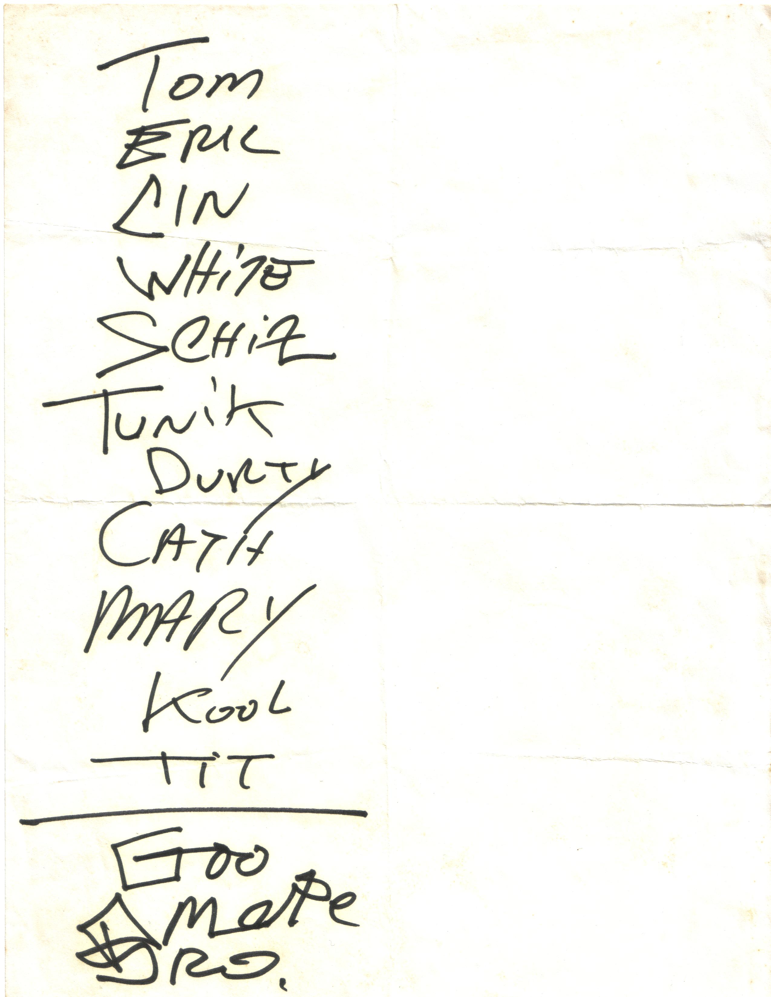 Tom Violence Eric's Trip Cinderella's Big Score White Kross Schizophrenia Tunic Dirty Boots Catholic Block Mary-Christ Kool Thing Titanium Expose -- My Friend Goo Mote Brother James |