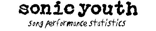 Howdy...welcome to the only black on white page in the entire 'mustang' directory! Even I couldn't read the new song statistic graph w/ white text on a black background, so I made an aesthetic exception. Everything should be self-explanatory, I took out all the noise collage pieces (Lee is Free, Scooter & Jinx, Providence, etc) that weren't replicated live (usually played off a tape during encore breaks in shows, though -- save for Providence being actually 'performed' during the 2007+ 'daydream nation' gigs), grouped the non-LP tracks by album era, and recounted/retallied every single stat to make sure it was up to date and accurately reflected the site's entire content.