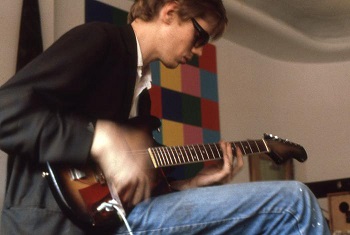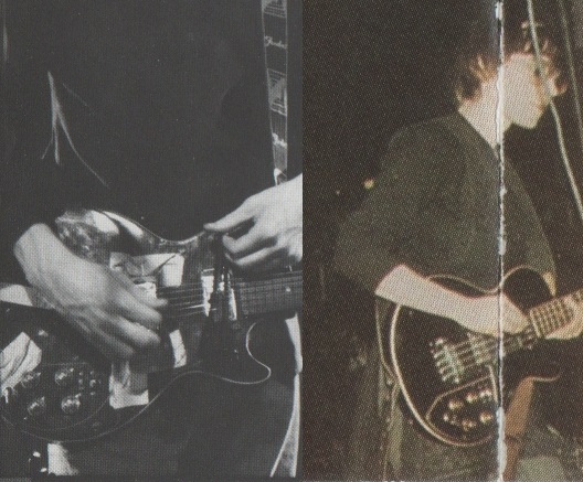 ![]() I have to bounce around a bit - in late '82, the future Confusion songs were still being formed, and some of the arrangements were different enough to be noteworthy. For example, "Bad Mood" did not feature Thurston's clanging open strings, instead he played a continuous rhythm that sounds palm muted. This is until the song's ascending climax, where he slowly runs a tool up the strings while the band crashes around him. It's one of my favorite passages in any Sonic Youth song. In the early versions, Thurston would sneak one last "She's in a Bad Mooood..." as the song was winding down. By the time the album was recorded, the song had a slightly new arrangement - now Thurston opened the track by harshly strumming all of the open strings of his guitar, and definitely not in standard tuning. This was one of his first notable uses of an "anything" tuning - a tuning with rough guidelines towards pitch but not tuned to anything specific. I wasted many hours trying to figure out the exact notes using multiple live recordings and it seems to shift subtly as the guitar suffers more abuse each night. Anyway, this is what you need to know: She's in a Bad Mood (early version, late '82) - stick count to bass/drum intro, Thurston plays palm muted strings through most of the song (including while he sings!), slightly slower, longer, and has a reprise of the title at the very end. She's in a Bad Mood (final version, early '83) - Thurston plays open strings to start the song (though some live versions continued to start with a stick count and bass/drums), does not play while he sings, and uses a slide for the climbing section at the end. For Confusion is Sex and subsequent live performances, Thurston used the same guitar for "Bad Mood" and "The World Looks Red". It was a cheap model by Knox, and was one of his main guitars until early '85. It was an "anything" tuning, but you can tell on the album that the opening "chord" of "World" are the same open strings in the random strumming that opens the album. I also think Kim used it for "Inhuman" and "Shaking Hell" in the same tuning, though I do believe "Protect Me You" may be a different guitar. But we're jumping ahead! So, the Knox was used for those two songs on the album and for the remaining '83 shows. Of course, he could have used the Drifter originally, and then switched to the Knox. I actually think that's exactly what happened...but not for "She's in a Bad Mood". Going back to the Kitchen pictures, we have Thurston playing the Drifter with a cowbell, and playing the Harmony with the "Burning Spear" setup. We know the full Kitchen set list, and Thurston plays bass on two songs ("Shaking" and "Making"). He does not play guitar on "Confusion is Next". We know he used the Harmony Bobkat for "The Burning Spear". This leaves us with the first two songs of the set, "The World Looks Red" and "She's in a Bad Mood". Now, "The World Looks Red" from this show is available to listen to on that compilation, and I won't pretend to be able to discern between the sound a cowbell makes against guitar strings versus a drumstick in the same situation, but to my ears the pre-song tweakin' and opening chord Thurston plays sounds more like something is stuffed under the strings than open strings ringing (or being prodded with a drumstick, which became the approach in '83). I believe he made subtle changes to his guitar parts for both songs, originally using the Drifter/cowbell for "World Looks Red" but later switching to Knox/drumstick. I think the Bob Bert pic might show Thurston (staged or not) in his "Bad Mood" stance, holding the (metal?) stick he initially used for the end of the song, later replaced with a slide. Do I have solid proof for any of this, or just flimsy circumstantial evidence? Mostly the latter. However, in the Kitchen pic, Kim's hand position circa the 3rd/4th fret matches the repetitive riff of "World Looks Red", and is not really a note she'd play in "Bad Mood", which is mostly droning low E with high notes added, until the crunchy chord at the end. The pic of Lee with the Tele and screwdriver has to be "World" or "Confusion", and "World" seems likely as it opened the set. So, are we seeing Thurston deep in concentration slowly dragging the cowbell up the strings for the climax of "Bad Mood", or are we seeing the end of "World Looks Red" when he's jerking it back and forth? Well, I still don't know, but here's one more fun piece of conjecture... In the collage of pictures from the June 18th Danceteria gig that appear in the Sonic Youth reissue CD, what guitar is Thurston playing? That certainly looks like a black Les Paul shape with white trim to me (and Kim is using the Fender bass already, so it's not that weird black Swans bass). And...do my eyes deceive me? Am I just seeing what I want to see? Is that a fucking cowbell under the strings at the 12th fret? Probably not, but consider the implications - could "The World Looks Red" have also been written with Richard Edson? Thurston is clearly not playing while he sings, which matches "World" but not the early version of "Bad Mood" (of course, any early version played with Edson could have had an even earlier arrangement, so this is not exactly evidence of anything than my overactive imagination). Howeveeerrrr... Have you listened to Sonic Death lately? If not, what's wrong with you? If so, you surely remember the oddball chipmunk version of "The World Looks Red" that features very early on. It's not the most thrilling listen, but have you ever slowed it down to something resembling proper speed? The artifacts from the tape speed make it only slightly more enjoyable to listen to, but we can pick up some clues. The section between the two verses seems to go on longer, and the very end has some pretty raucous drum fills, very unlike Bob. Obviously I can't confirm who's playing drums on the chipmunk version of "World", nor can I confirm that the Drifter pic is them playing "World", but there's enoug