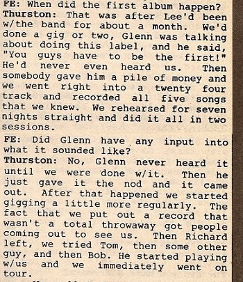 | Just in case you thought they were rich rock stars in 1983. That Suburban Relapse interview is a very interesting document from this era, by the way. So is the Unsound feature! Thanks to Raj Paden for informing me about another 1983 interview in Terminal!, which is full of interesting information, including a description of a summer 1983 CBGB gig with a partial set list.