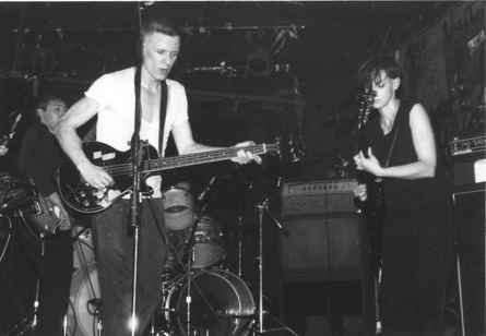 ![]() There are gig posters for a number of Mudd Club gigs between February and April 1982. However, many of these dates are crossed out in Lee's meticulous journal, so I've removed them: February 19th and 20th, shattering any notion that these were Richard Edson's final gigs, and also March 31st. That leaves April 1st for the fabulous set of pictures that I've determined are probably all from the same Mudd Club gig. A promotional poster for Sonic Youth was made featuring individual shots of all four members, and three of them are taken from this same gig (Lee's is the classic drill instruction from CBGB '81). Some of these pix were in Sonic Death and some accompanied early magazine interviews. Kim is now playing a white Fender Mustang bass. Thurston also played the Mustang bass when he would join the Swans onstage, like in this example from a CBGB gig, likely July 5th - and hey, Mike Gira is playing the black Les Paul style bass that Kim was using before! Perhaps they'd just borrowed it (see another Swans gig where Gira is playing the same bass).