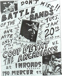The earliest Coachmen date I have documented is May 1st, 1979 at CBGB. January 27th, 1980 is the date of the CBGB gig that featured both The Coachmen and The Flucts (formerly Fluks). Kim and Miranda attended their last gig at the Plugg Club in August 1980, which is when Kim and Thurston met for the first time. They released one 5-song posthumous collection in 1988, titled Failure To Thrive.