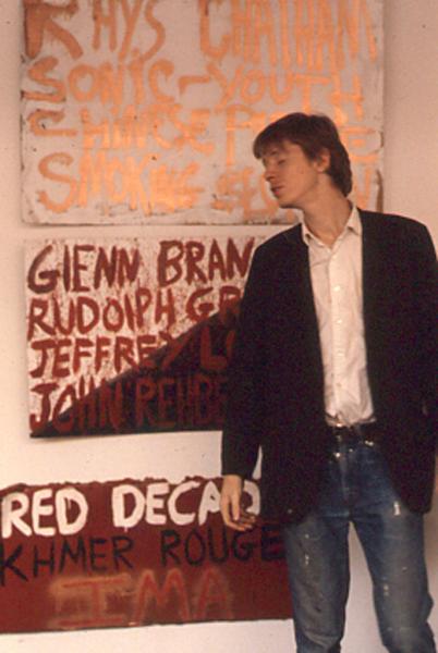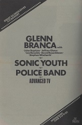 ![]() So, it's May 1982, and Richard Edson is still clearly on drums. Mike Gira is playing bass, Thurston and Lee are both playing guitar, and Kim is singing with no instrument. At this stage of the game, there are very few options as to what they could be playing - in fact, my best guess is "I Wanna Be Yr Dog". Though Thurston would play bass when they eventually started covering it, it would be easy enough for him to follow along on guitar (and likewise easy enough for Gira to sub on bass). Another piece fell in place when I was sent a picture of an advertisement for a White Columns benefit at Danceteria on Thursday May 27th, which would have been 1982. Could this picture have been from this show? Well, I dug a little deeper, and found another pic in I Dreamed of Noise - this time of Branca's ensemble, featuring Thurston and Lee, also from Danceteria, also from May 1982. They are set up on the floor, and you can see the amps from the Sonic Youth pictures on stage behind them. So I'm fairly confident these pix all come from May 27th, 1982. (It's worth noting that Catherine Ceresole chose this as her favorite show in the I Dreamed of Noise bio!)