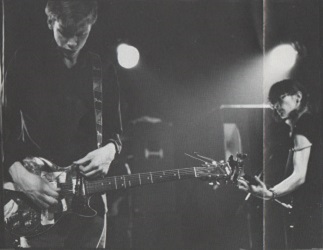 | This is the end of the song, and I think I hear a "2 3 4.." count very softly in the fade at the end of the track, suggesting they launched right into another song. Since it sounds like Lee was strumming behind the bridge of the blue Jazzmaster to kill time, Thurston was probably switching instruments (possibly even to bass). Actually, there's a pic of Lee using the blue Jazz with a drumstick, so maybe they did go into "Nature Scene", though it's not included. | ||||