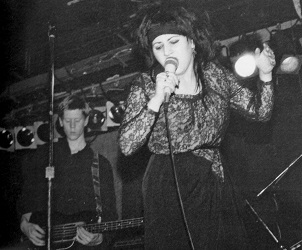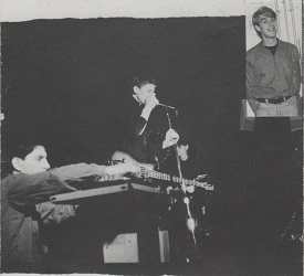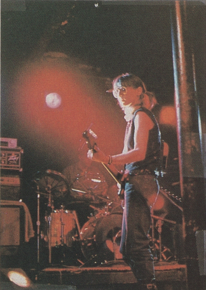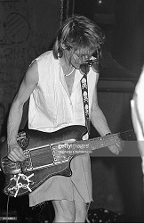 ![]() Hey look, she even snuck on stage with Rhys Chatham, who was also joined by Thurston! These three pics come from April 14th, 1982, back at Danceteria. Still has the light coloured pillar. Not so in these four pictures from yet another Danceteria gig, now confirmed to be May 9th. They're still using the Tele, the Bobkat, and the Mustang bass. Based on this configuration, they are most likely playing "The Good and the Bad" in all three band pix, and "Burning Spear" in the solo T shot (is that the Drifter behind him?).