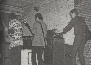 ![]() First off, Thurston with a drumstick under his strings, attacking it with another drumstick, tweaking the first one with his left hand...that's "The Burning Spear". Lee holding a power drill with a contact mic duct taped to it? Yeah, that's "The Burning Spear" too. The picture of the full band is interesting - there's no drumsticks, so it's not "The Burning Spear" or "She Is Not Alone". Kim is playing bass, so it's not "The Good and the Bad". Based on the chord shape that both Thurston and Lee are making, plus Kim's low position on the fretboard, I would lean towards this being "I Dreamed I Dream". It would be interesting to know if they ever played this song with both Kim and Lee doing a vocal part, but unfortunately the Music For Millions set is the only circulating live version. Let's talk gear. While the band is legendary for the quantity of instruments they bring onstage, such was not the case early on. In fact, Thurston had a Harmony Bobkat, Lee had a thinline F-hole Telecaster with a Tele Deluxe neck, and Kim had...some black Les Paul copy? Also, dig Edson's bongos, which supposedly startled the band when they first arrived to jam with him. Also, at this point in time all of the songs were still in standard EADGBE tuning, even when there was a drumstick shoved under the strings.
