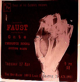 This I can't explain. Though Letterman tapes in the afternoon, I really doubt Thurston flew to Seattle to play a show that evening, so I can only assume that Thurston had to cancel this Seattle show to do Letterman, but posters had already been printed. Unless someone has an explanation...