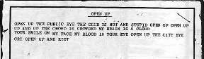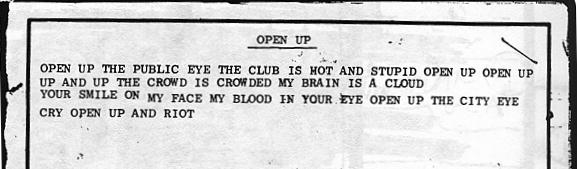 - A set of lyrics presumably written by Thurston circa 1985 (seemingly at a gig). Whether or not these lyrics were ever put to music is uncertain, but