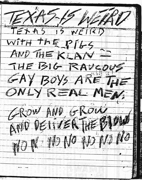 - A set of lyrics written by Thurston in the mid 80s. Whether or not these lyrics were ever put to music is uncertain, but